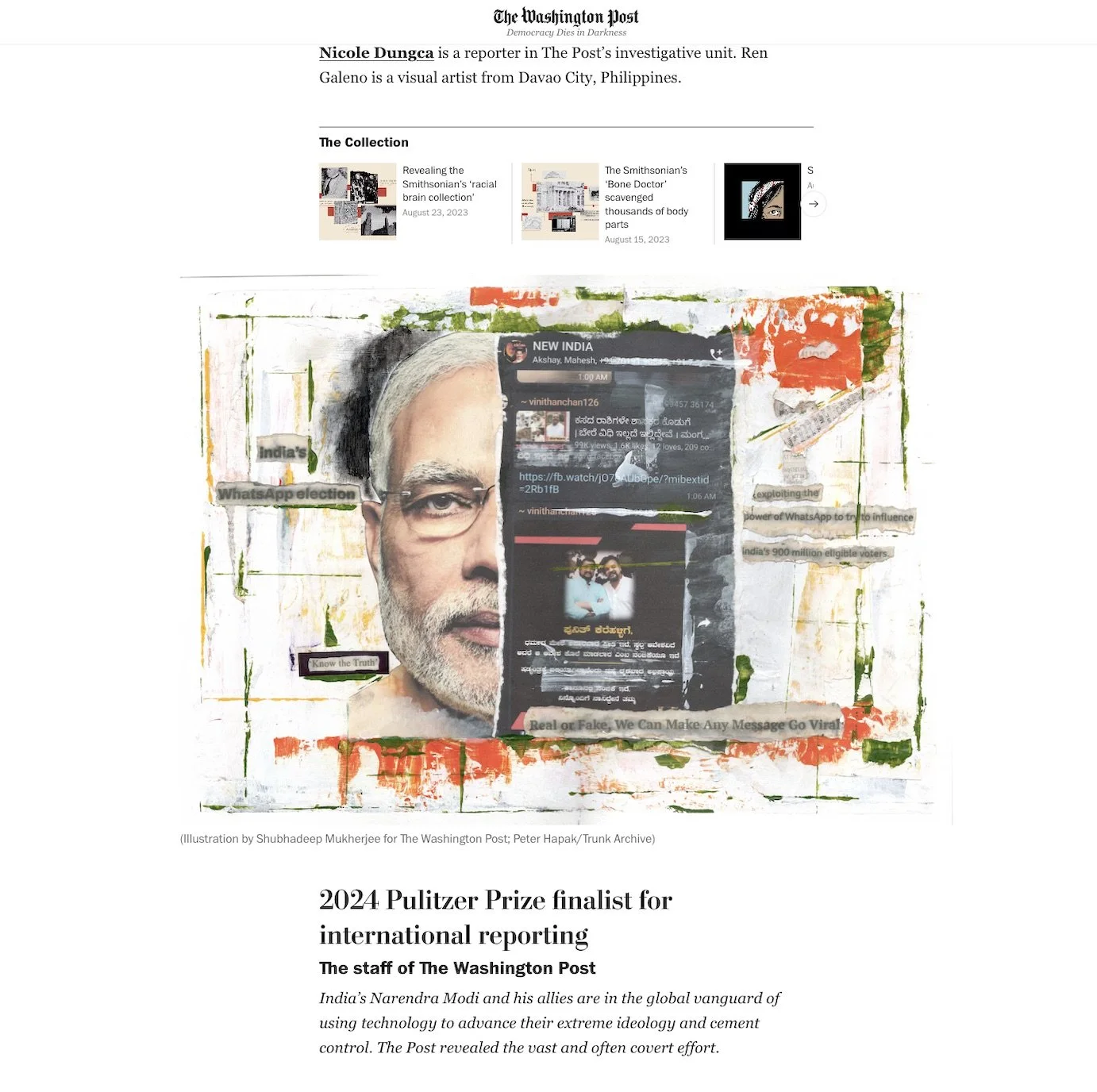 Pulitzer Finalist for International Reporting with The Washington Post as an analogue illustrator.